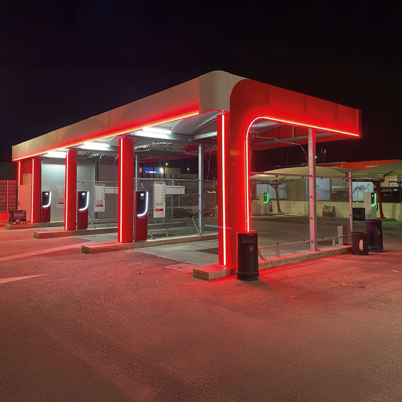 The D'tail canopy developed by ISTOBAL allows all vehicle cleaning accessories to be located in an integrated way, giving the facility a professional look.